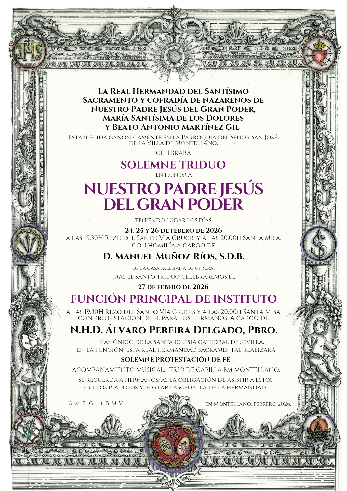 TRIDUO EN HONOR A NUESTRO PADRE JESรšS DEL GRAN PODER, 2026.